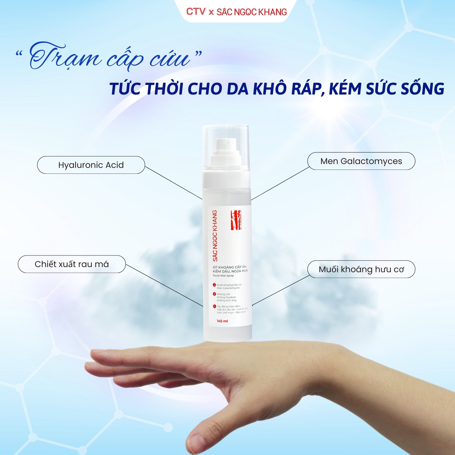 Xịt Khoáng Cấp Ẩm – Kiềm Dầu – Ngừa Mụn Sắc Ngọc Khang chính là giải pháp đột phá giúp tái lập trạng thái cân bằng tự nhiên cho làn da của bạn.